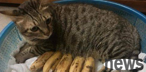 The cat just wants to have a good sleep, so the man who takes care of it feeds it with a row of bananas.