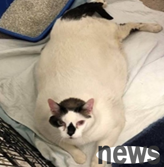 The biggest abandoned cat in history... It s so fat that it s not in a cage. After measuring weight, the shelter staff s face was frightened