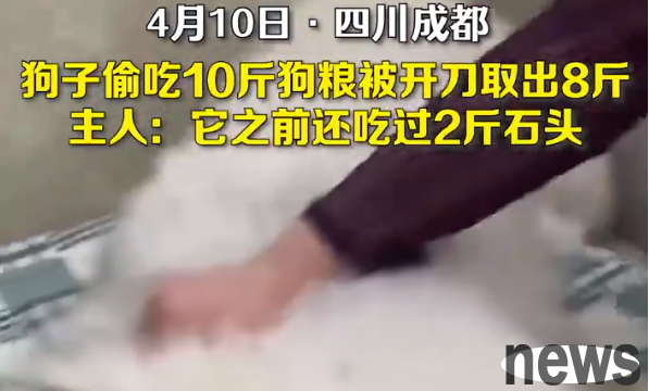 The dog secretly ate 10 kilograms of dog food and had to undergo surgery. He also ate 2 kilograms of stone before.