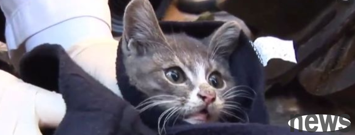 The staff who came to the rescue wanted to help the kitten, but it was always vigilant not to let others approach, as if it was using the last bit of strength to protect the mother cat...