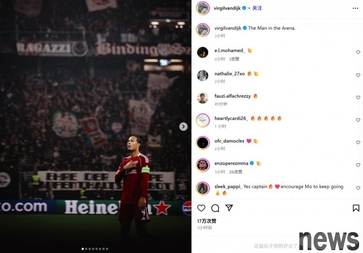Ending 4-game losing streak! Liverpool captain Van Dijk posted a final photo to the fans on social media: the man in the stadium