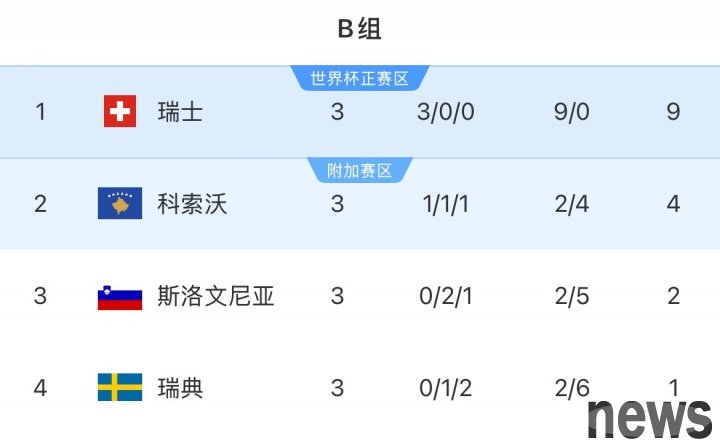 Last place without a win in 3 games! Sweden s probability of directly qualifying for the World Cup is only 1%, and its probability of qualifying for the play-offs is 99%