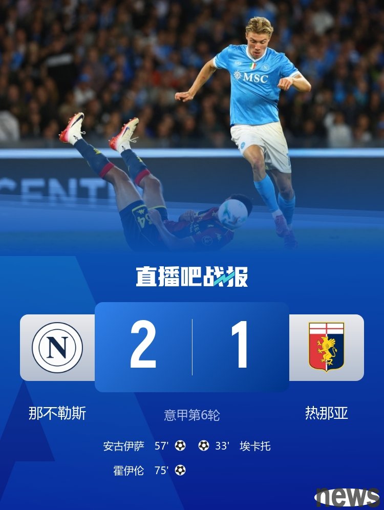 Naples reversed Genoa 2-1 in this round. Hoylen scored, and his performance was outstanding in recent games.