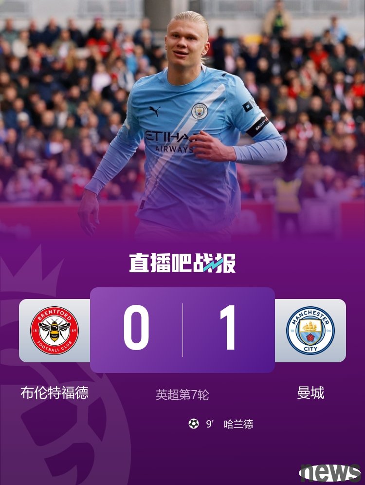 to 5th place! Manchester City 1-0 Brentford, Haaland scored 9 goals to lead the scorer list, Rodri retired from injury