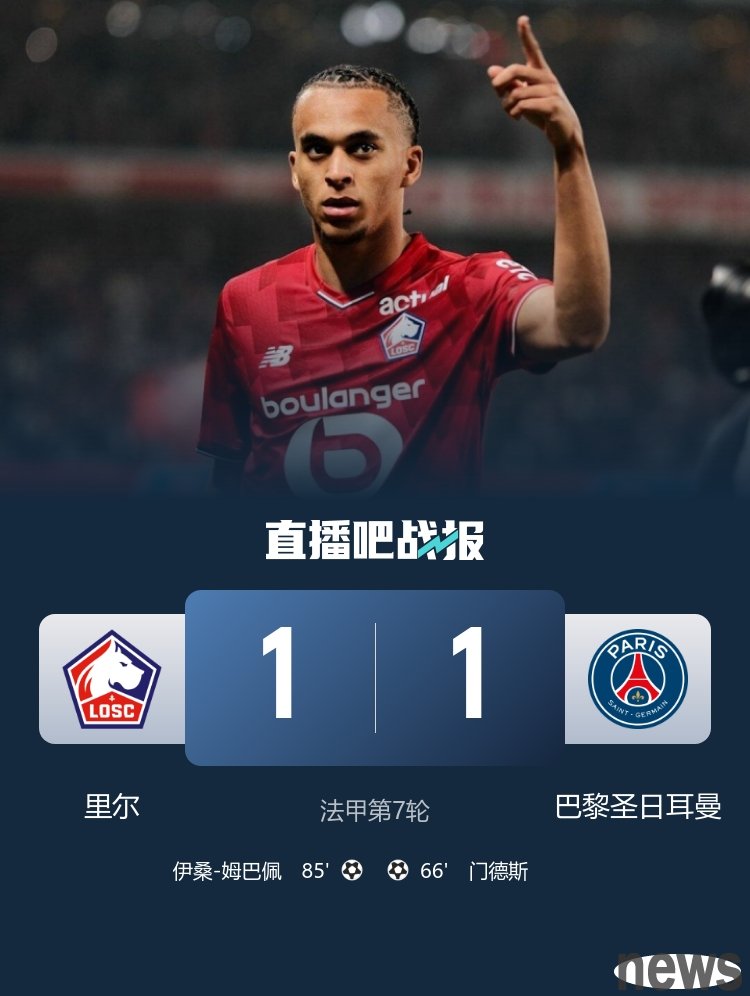 Paris draws Lille 1-1 in this round, Mendes World Wave, Ethan Mbappe scores, and another highlight is that Mbappe watches the game on the spot and celebrates his brother's goal.