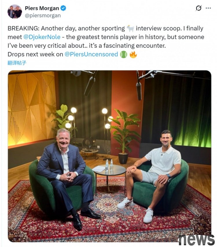 Famous British mouthpiece Morgan announced on social media that his next interview subject will be tennis king Djokovic.